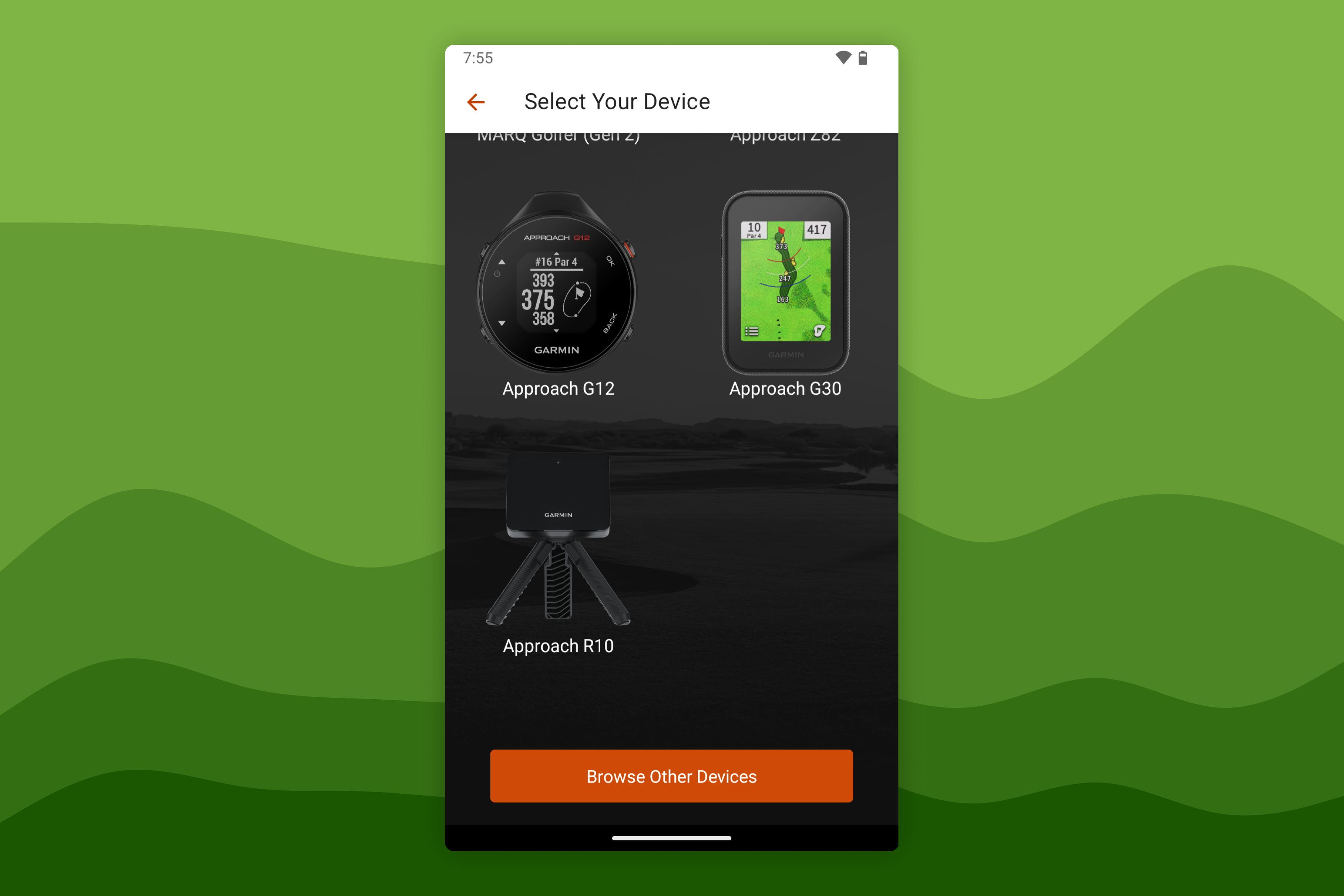 On a mobile device, install and open the Garmin Golf app.